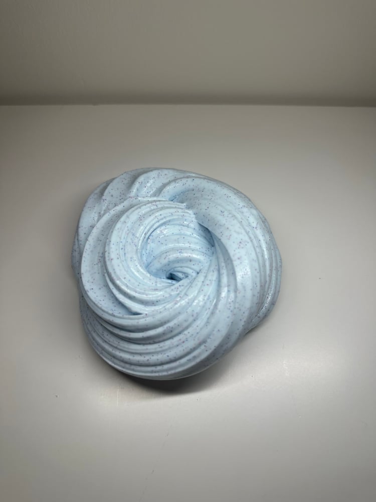 Bubblegum Cream is a soft, smooth butter slime that feels like spreading whipped bubblegum frosting. Lightly pastel blue and sprinkled with pink and blue glitter, it’s sweet, dreamy and oh-so satisfying to squish! 🫧🩵